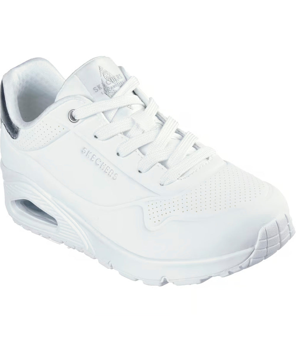 Apuesta por el oro y realza tu estilo con Skechers Street™ Uno - Golden Air. Zapatilla fashion con cordones, parte superior de piel sintética durabuck con acentos dorados, plantilla Skechers Air-Cooled Memory Foam® y media suela visible Skech-Air® con amortiguación y cámara de aire. Los colores originales del producto pueden variar al de la imagen por cuestiones de resolución, brillo y/o luces.