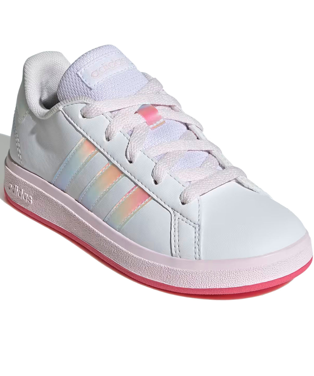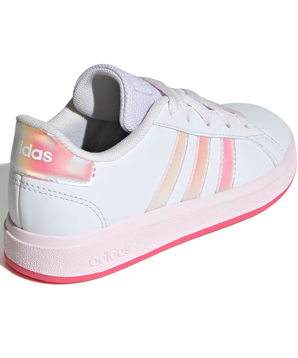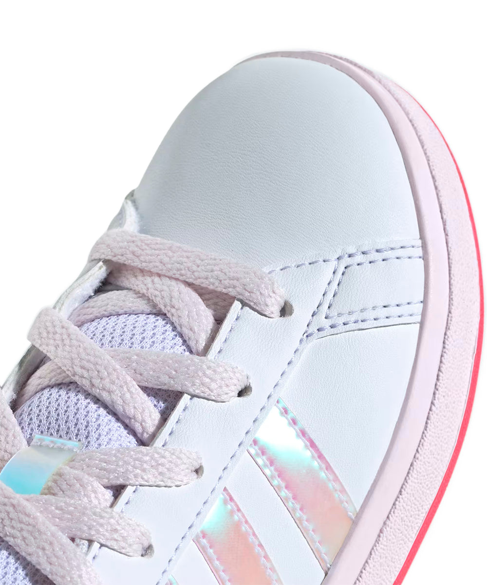 Adidas hizo su tarea y rediseñó este modelo clásico para niños, los tenis Grand Court para jugar tenis. Por su exterior suave de material sintético que resiste golpes y rozaduras, y la suela flexible tipo cupsole de caucho que brinda soporte y protección a los pies en crecimiento, estos tenis con cordones cuentan con la aprobación de padres y niños. Hecha con una serie de materiales reciclados, esta parte superior incorpora al menos un 50 % de contenido reciclado. Los colores originales del producto pueden variar al de la imagen por cuestiones de resolución, brillo y/o luces.