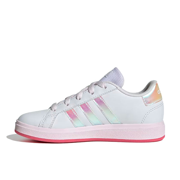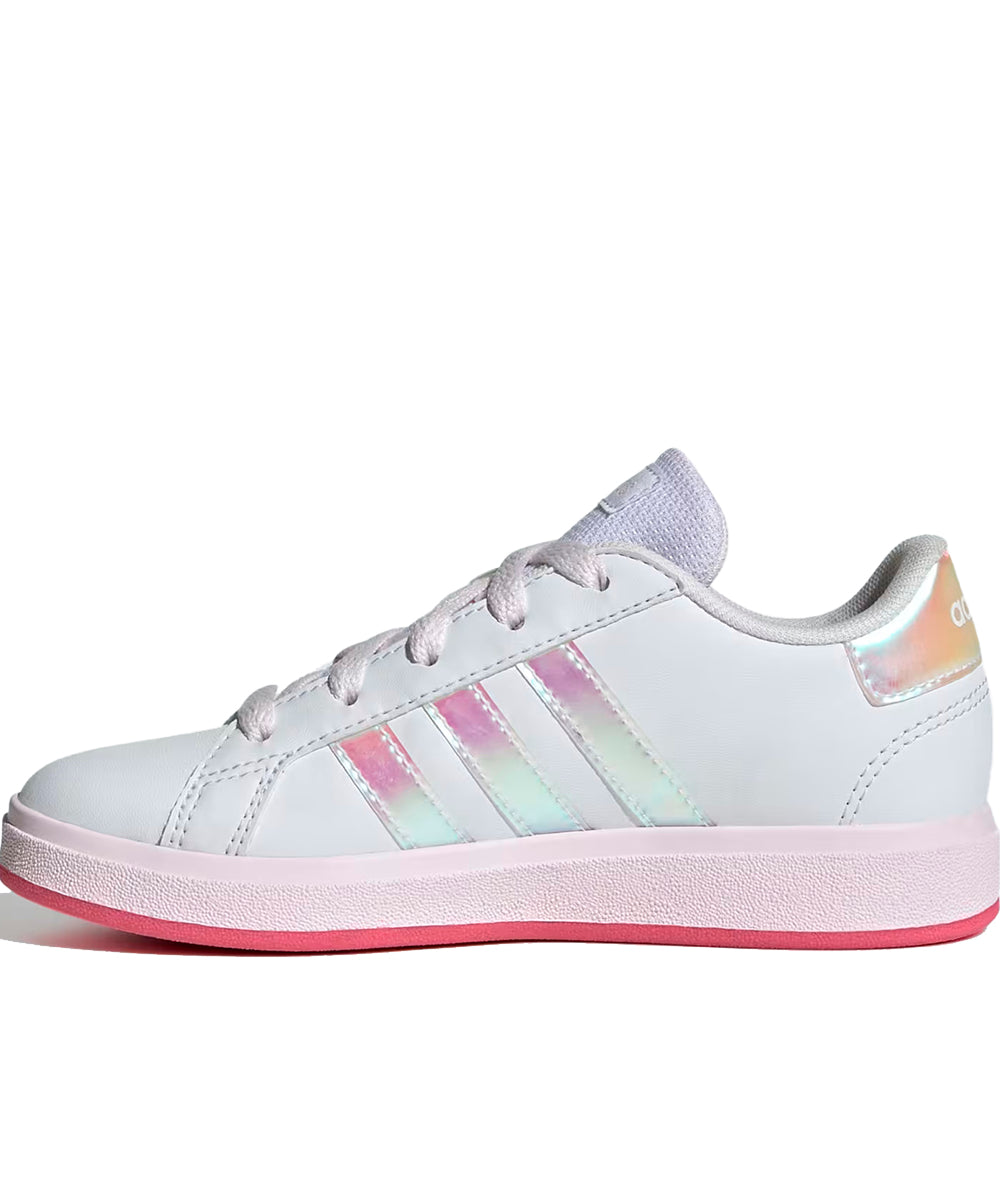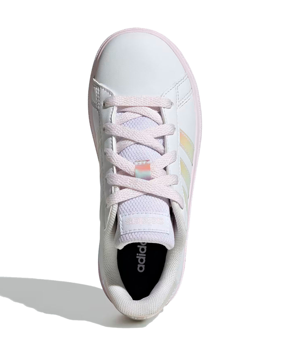 Adidas hizo su tarea y rediseñó este modelo clásico para niños, los tenis Grand Court para jugar tenis. Por su exterior suave de material sintético que resiste golpes y rozaduras, y la suela flexible tipo cupsole de caucho que brinda soporte y protección a los pies en crecimiento, estos tenis con cordones cuentan con la aprobación de padres y niños. Hecha con una serie de materiales reciclados, esta parte superior incorpora al menos un 50 % de contenido reciclado. Los colores originales del producto pueden variar al de la imagen por cuestiones de resolución, brillo y/o luces.