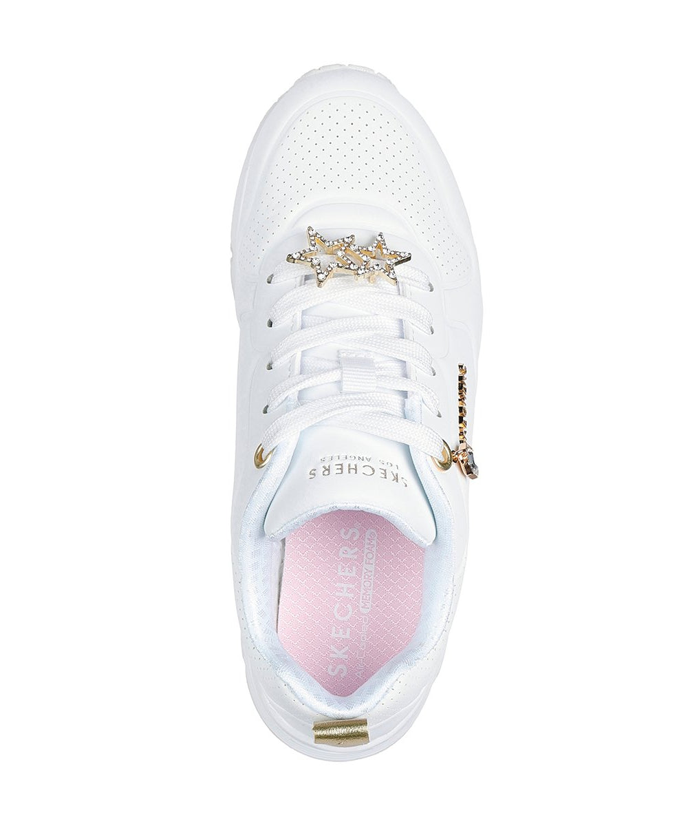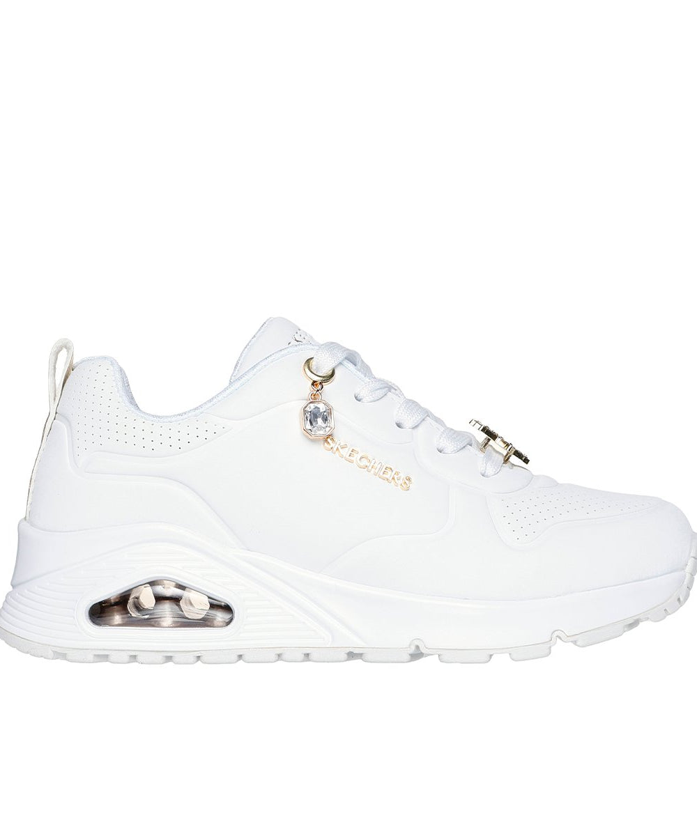 Mejora tu estilo deportivo con la comodidad suave y amortiguada de las Skechers Street™ UNO Gen1 - Trendy Jewels. Estas zapatillas con cordones cuentan con una parte superior de durabuck en relieve y cintura con pedrería, una cómoda plantilla Skechers Air-Cooled Memory Foam® y una entresuela expuesta con amortiguación de aire Skech-Air®. Los colores originales del producto pueden variar al de la imagen por cuestiones de resolución, brillo y/o luces.